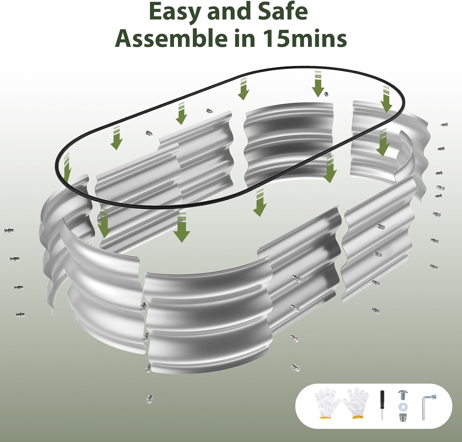 🔩 Rust-Resistant & Durable: Made with galvanized steel and coated with a rust-resistant layer, this garden bed is built to withstand harsh weather conditions. Reinforced steel connectors provide added stability, ensuring a secure and safe structure.