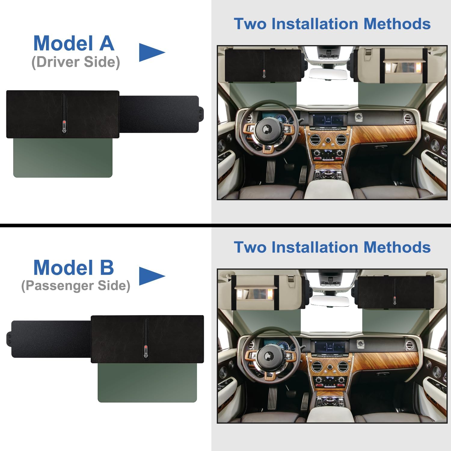 - Dual-Sided Design: The black side is ideal for daytime use, reducing sunlight intensity, while the yellow side is perfect for nighttime driving, minimizing glare from headlights and ensuring clear vision at night.