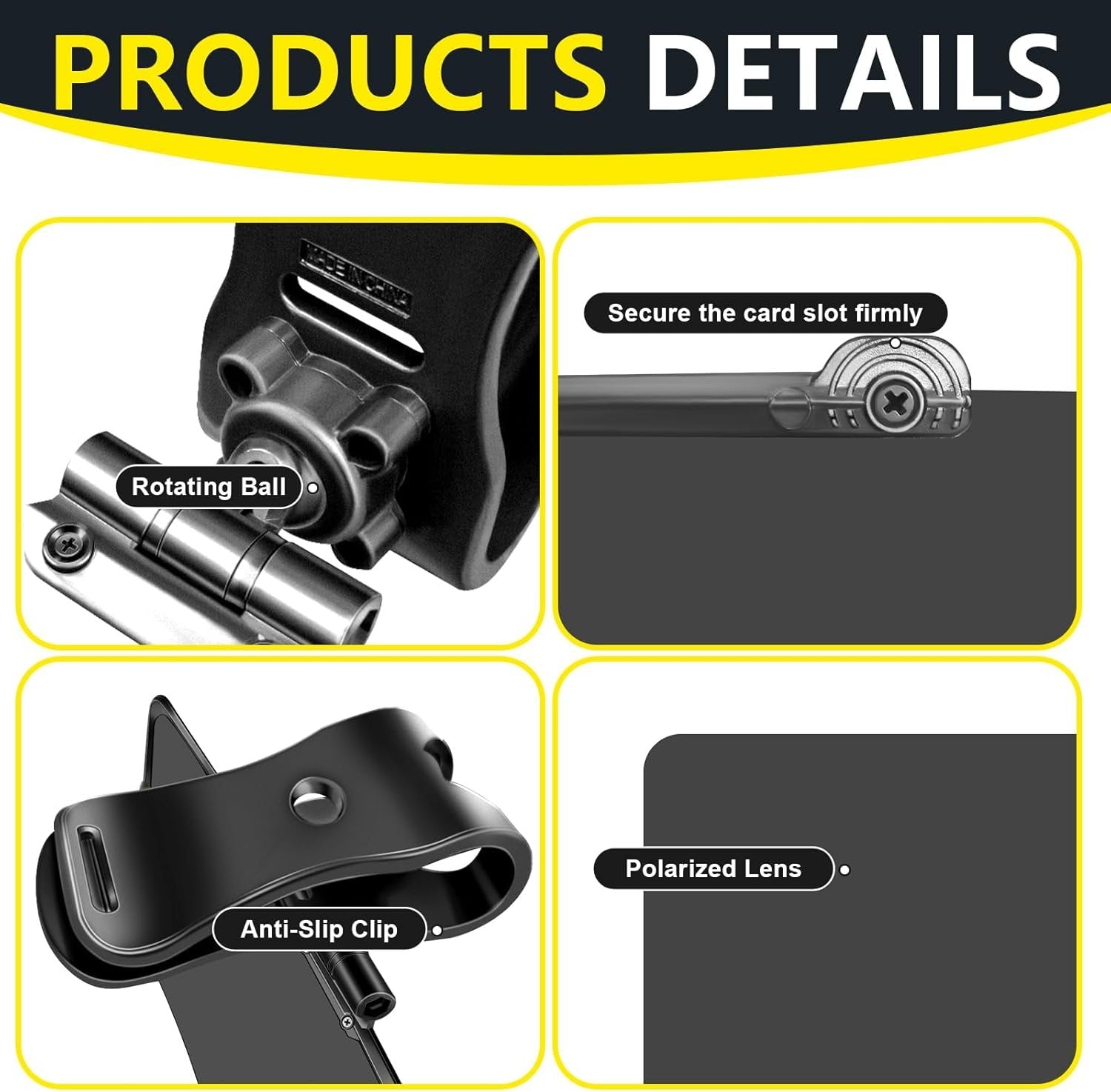The polarized technology eliminates glare, providing you with a clear view and reducing eye fatigue, ensuring a more comfortable and safer driving experience.