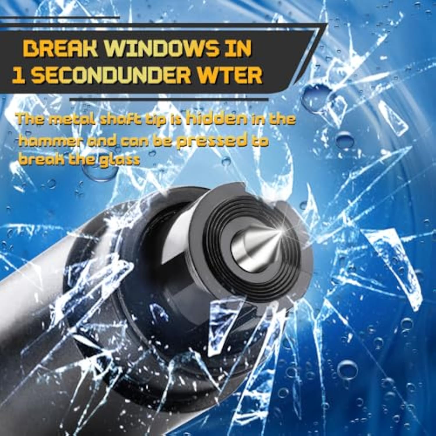 Trapped in an emergency? Our 2-in-1 Car Escape Tool is here to save the day! Featuring a powerful window breaker and a sharp seat belt cutter, this tool ensures you can escape quickly and safely. Even underwater, a simple press will shatter the glass in just 1 second!